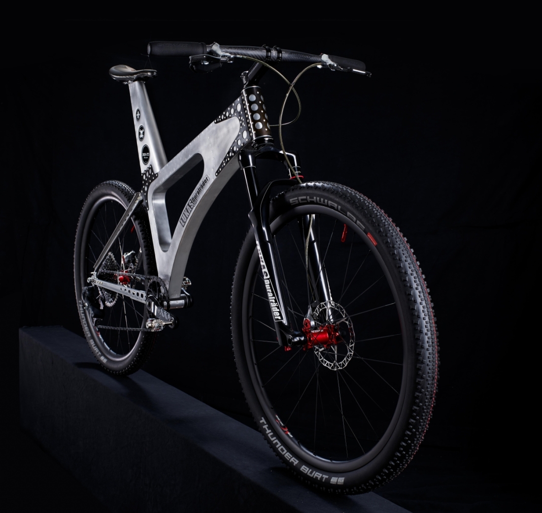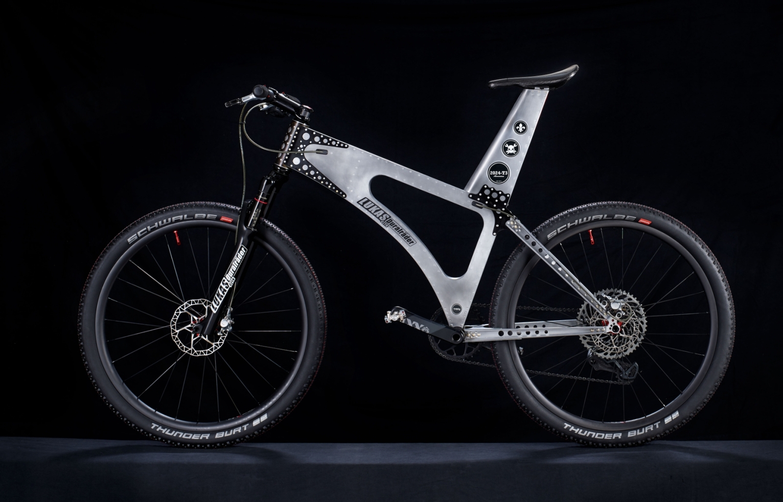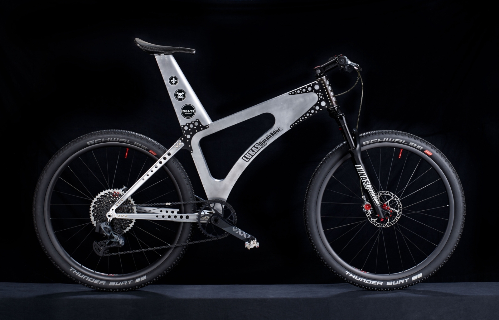 Vorwort: Auf dieser Seite möchte ich mein Fahrradprojekt vorstellen. Es handelt sich dabei um einen neu entwickelten Mountainbike-Rahmen, der eine in der Fahrradwelt bislang unübliche Konstruktionsweise aufgreift. Entgegen der üblichen Rahmenmaterialien, Stahl, Titan, Aluminium oder Karbon-Faserverbund, verwende ich hochfestes Luftfahrt-Aluminium. Die dabei zum Einsatz kommenden Legierungen bieten die höchste spezifische Festigkeit, die mit Metallen derzeit möglich ist. Sie sind jedoch praktisch nicht schweißbar und daher müssen Niete diese Blechhalbzeuge verbinden. Das ist in der Luft- und Raumfahrt durchaus üblich und exakt so werden Kampflugzeuge seit etwa 100 Jahren hergestellt. Aus diesem Blickwinkel handelt es sich keineswegs um eine neue, oder gar meinen Idee. Ich vermute jedoch, nur die aufwendige und damit teure Verbindungstechnik hat es bislang verhindert, dass sich diese Bauweise auch in der Fahrradtechnik etablieren konnte. Als Selbstbauer unterliege ich aber nicht diesen kommerziellen Beschränkungen und kann diesen Ansatz rein wissenschaftlich und analytisch verfolgen. Neben der höheren Festigkeit bestehen noch weitere Vorteile. Niete erlauben auch eine spezifische Materialwahl einzelner Baugruppen. So ist es recht einfach möglich, ein Tretlagerrohr oder ein Steuerrohr in einem Aluminiumrahmen beispielsweise in Stahl oder Titan auszuführen. Auch bei der Wahl der Materialstärke kann man sehr flexibel vorgehen. Anders als bei einer Rohrkonstruktion, die umlaufend mehr oder weniger immer die gleiche Stärke aufweist, können jene Bleche die mehr Kräfte sehen, stärker ausgeführt werden, als andere. Das hat gerade hinsichtlich Leichtbau einige Vorteile. Nietverbindungen sind zudem relativ unempfindlich, was die Materialermüdung angeht. Das Schweißen von Aluminium hingegen erfordert immer konstruktive, gewichtstreibende Maßnahmen, die diese potentielle Schwachstelle angehen. Mit diesem Projekt möchte ich herausfinden, ob es möglich ist beim Metall-Fahrradbau nochmals Gewicht einzusparen. Dabei möchte ich die Schadenstoleranz und die Schadenstransparenz von Metall mitnehmen und mit dem Rahmengewicht in die Reichweite von Karbon-Faserverbund-Rahmen vordringen. Dabei soll eine Maschine entstehen, die sich in Sachen Performance mit den besten Produkten des Marktes messen kann. |